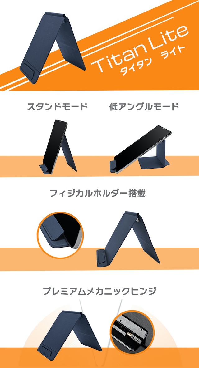 デバイスのサイズを問わず、全てのTitanは高い耐久性のプレミアムメカニカルヒンジを採用しており、スムーズかつ想像以上のフリーな角度調整ができます。