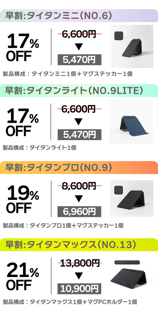 と思ってる方々のために最適な提案になると信じ、多様なモバイルデバイスの自由自在な角度調節使用ができる多機能スナップスタンド「ergomi TITAN」をメーカー独占契約を締結。マクアケプロジェクトとしてサポーターの皆様にご紹介いたします。