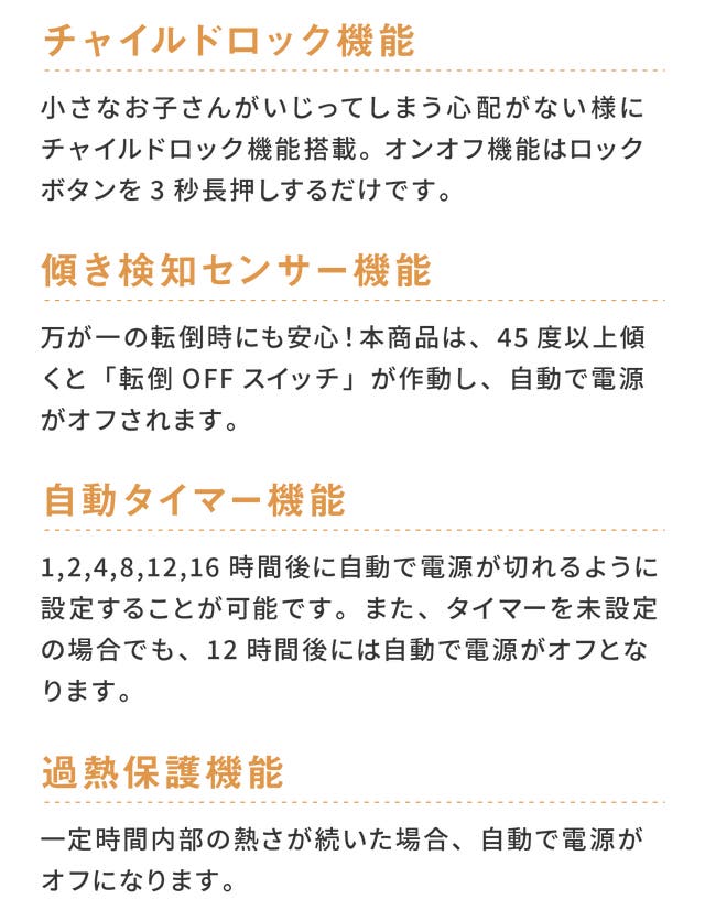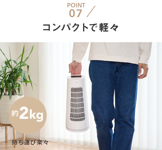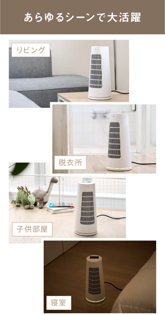 コンパクトで軽量なので、家中持ち運んで使用いただけます。急いで温めたい(or冷ましたい)脱衣所から、安全なものを置きたい子供部屋、寝るときにタイマー設定したい寝室など、1台で幅広く使用できます。