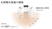 左右に4段階 (30° / 60° /90° /120°)の首振り機能搭載。