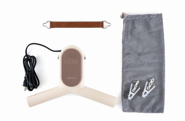 内容物(1台):本体、電源ケーブル、収納ポーチ、専用洗濯ばさみ×2、取扱説明書