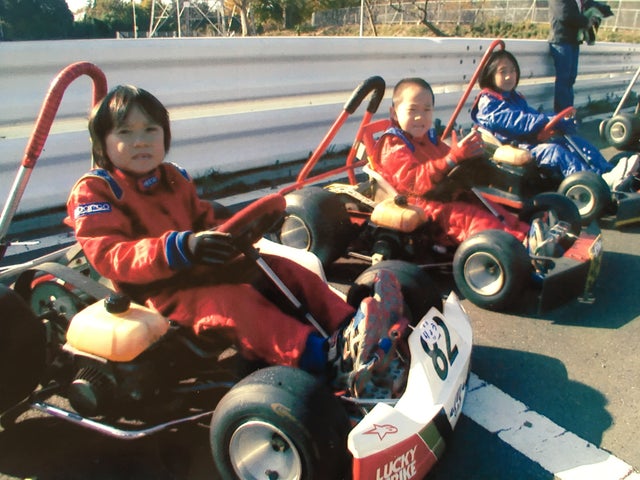 10歳の時にレースと車が大好きだった父が、私と弟2人をキッズカートに乗せてくれました。