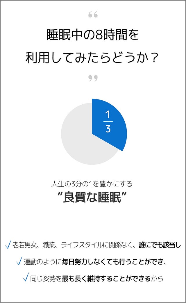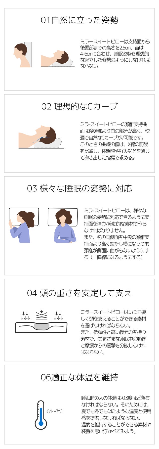 これは、枕を作る前、数万人の患者の診療を通じて積んだデータと知識、経験を総動員し理想的な睡眠と姿勢の条件を整理し、それに合った枕のミッションを定義した内容です。