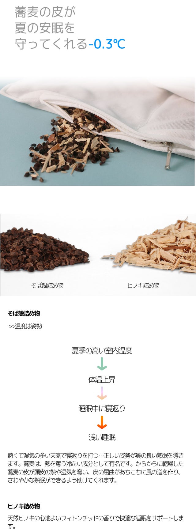 - 蕎麦+ヒノキ「素材の交換式」で体の温度を下げて安眠をサポーターする枕