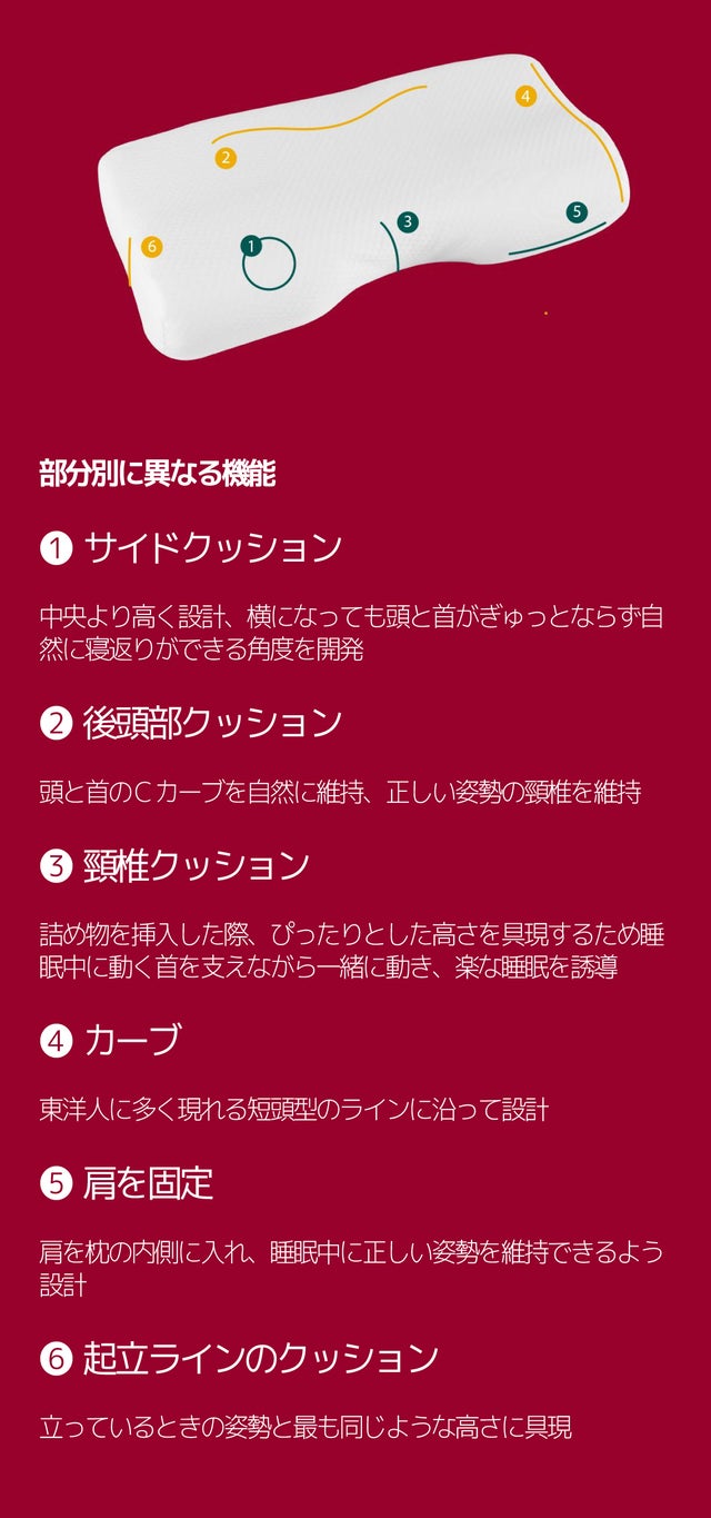 だから頭の重さと衝撃を分散して、頚椎に無理を与えない素材、長い間、均一な形を維持することができる素材を見つけなければなりませんでした。