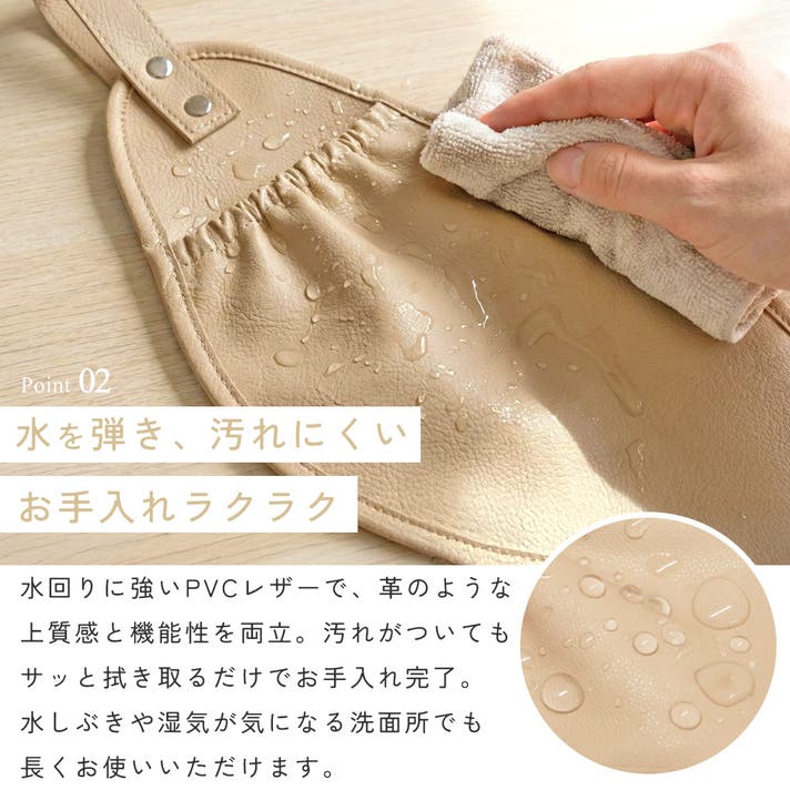 - 【お手入れ簡単&扉掛けもOK】水に強い素材だからサッと拭くだけ。付属フックで家中どこでも設置