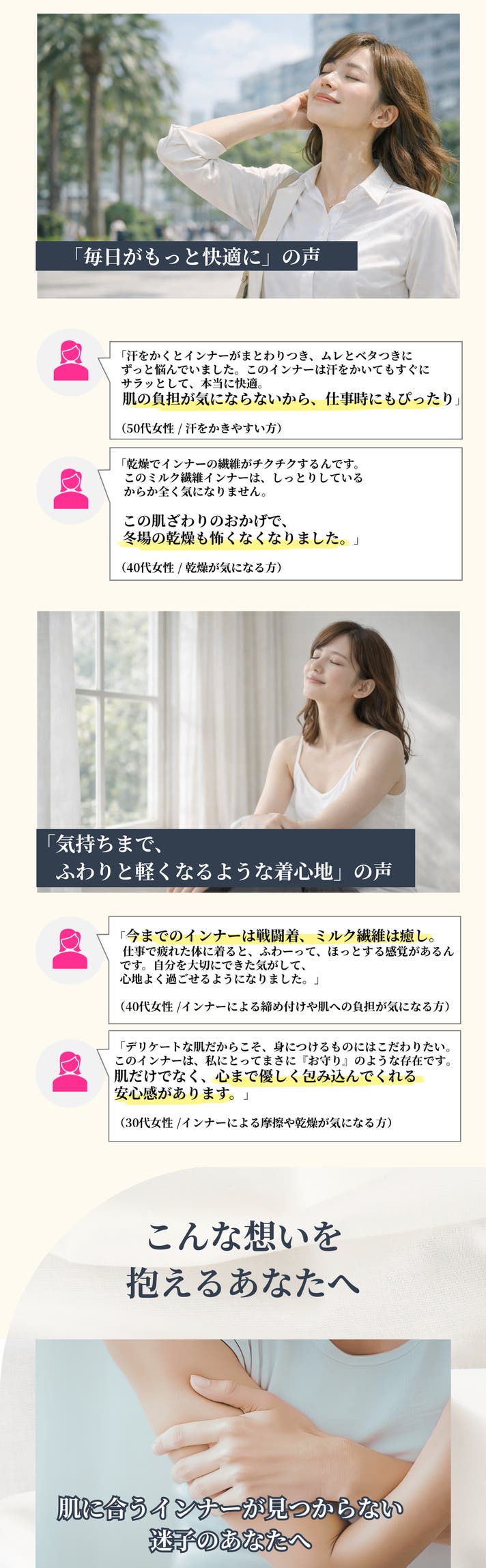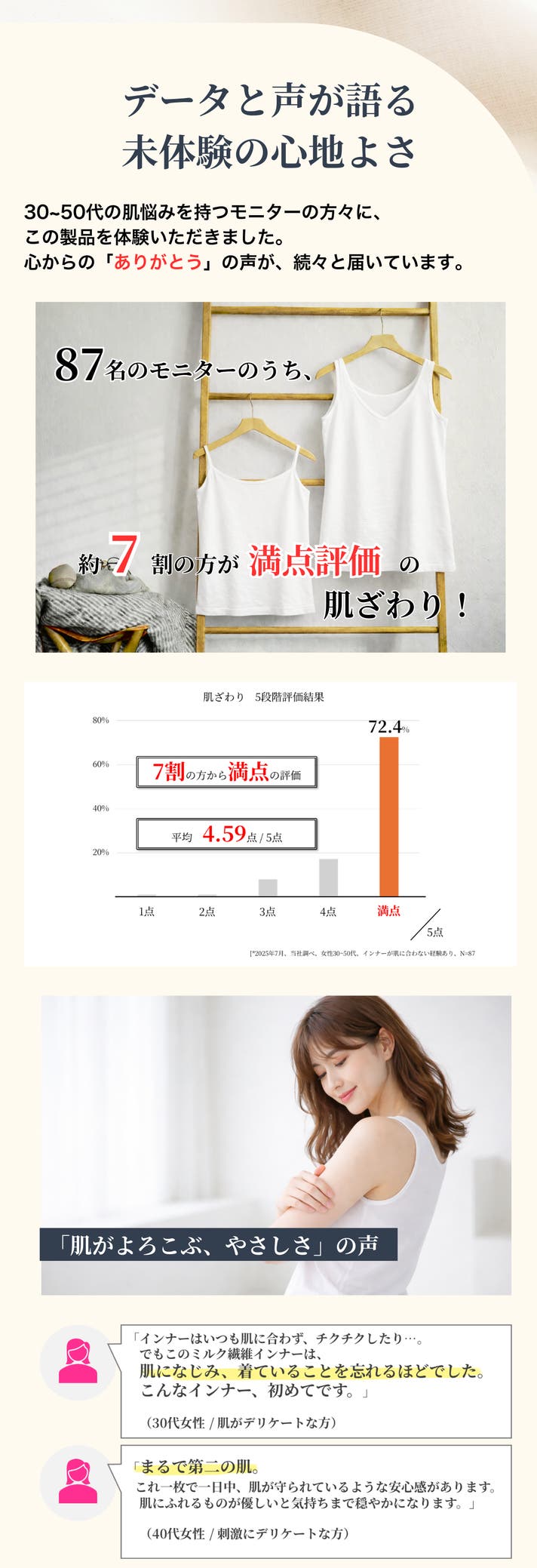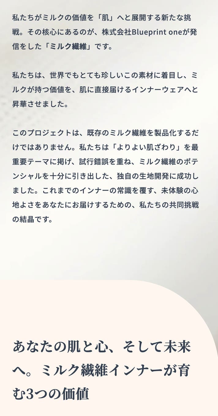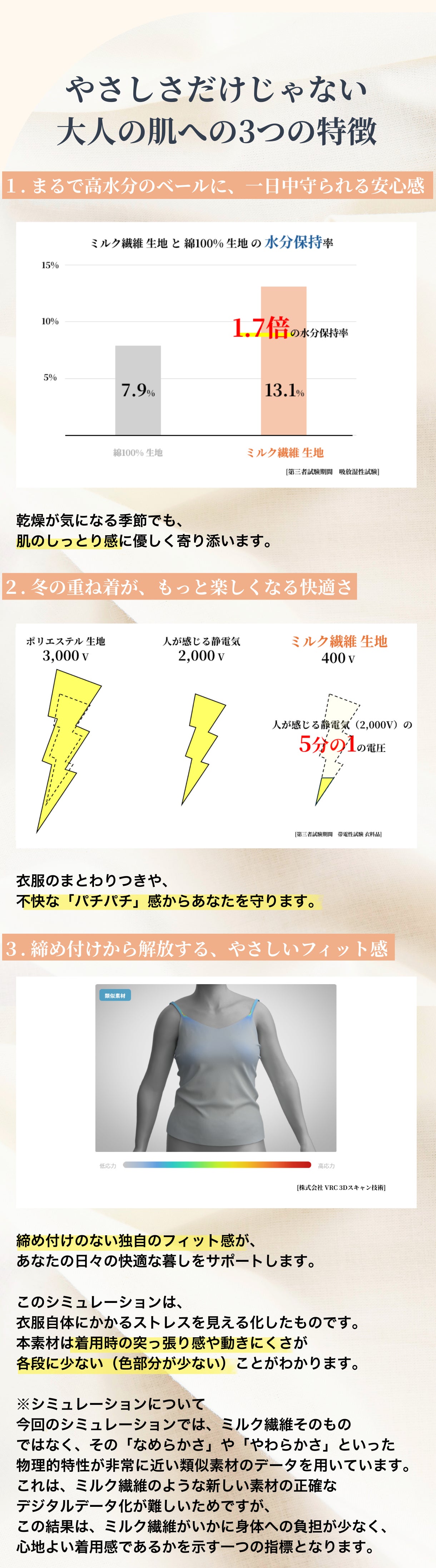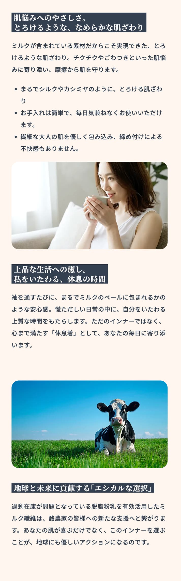 - ミルク繊維だからこそ実現できた、とろけるような肌ざわり。