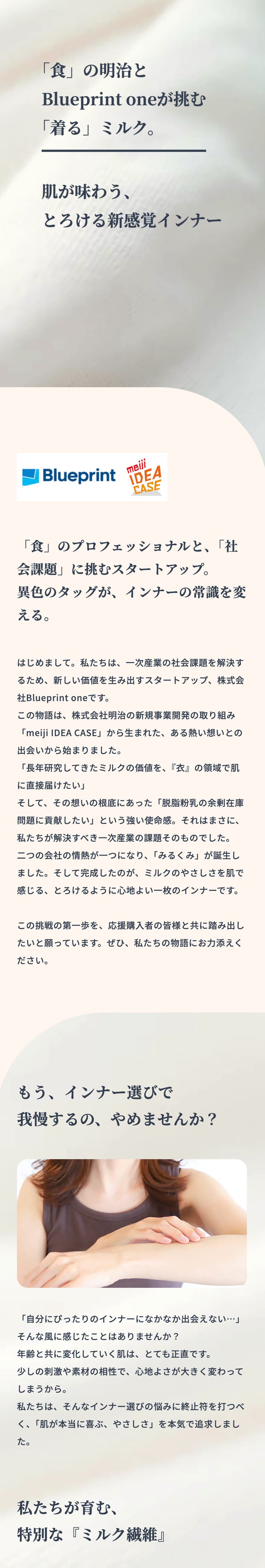 - 「食」で内から、「衣」で外から。Blueprint oneと明治の新たな挑戦。