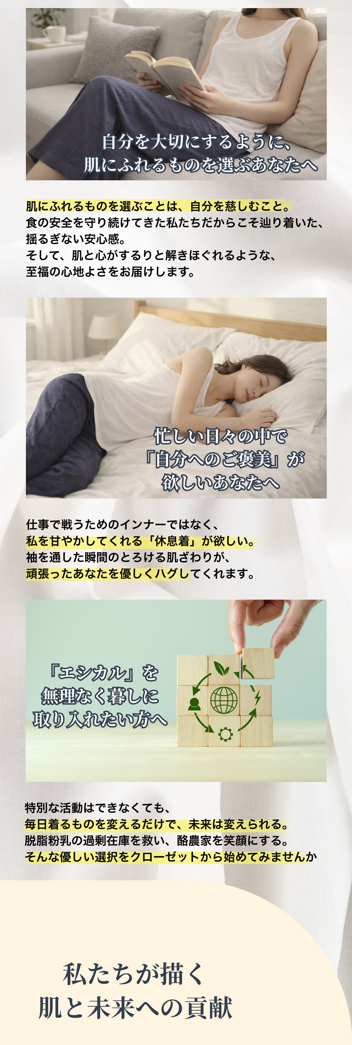 - 日本の酪農の未来へ。着ることが、やさしい選択になるサステナビリティ。