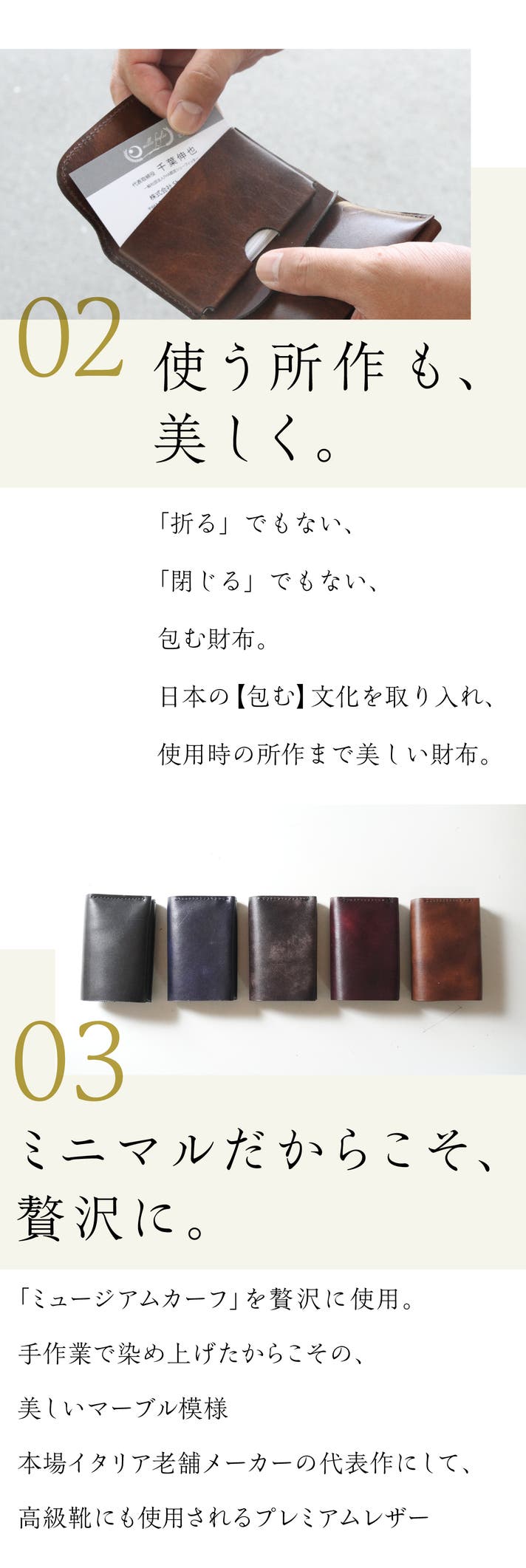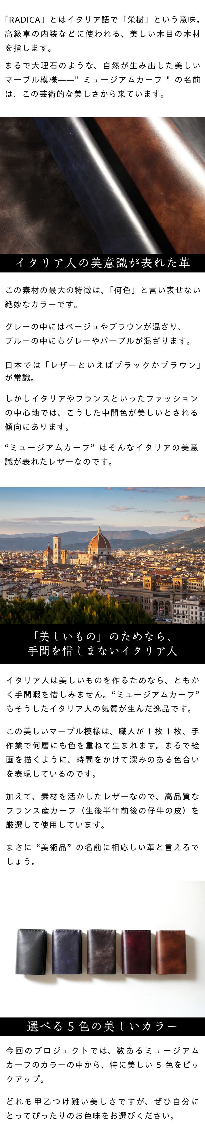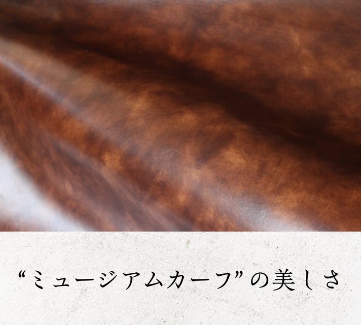 - 職人が手作業で染め上げた、美しくも丈夫なプレミアムレザー「ミュージアムカーフ」を贅沢に使用。