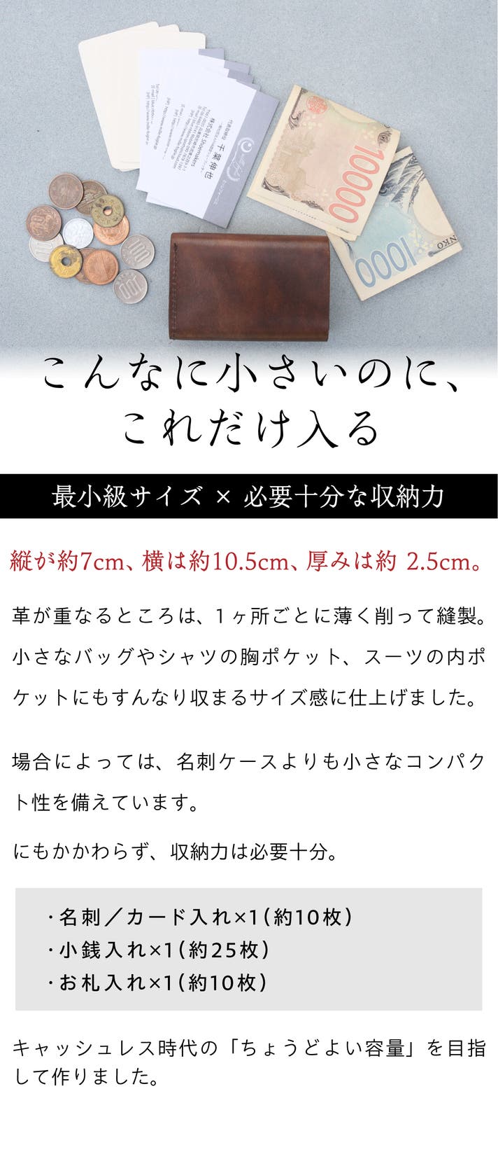 - 【胸ポケットに入る最小級*サイズ】×【名刺/カード10枚+小銭25枚+お札10枚が入る収納力】