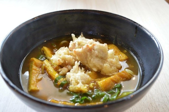 その先代から縁あって引き継いだ現在の二代目は渡仏してフランス料理を学んだ経験を活かし、レシピもない先代の出汁作りを習得し、そして先代以上にカレーうどんに合う出汁つくりを心がけ、試行錯誤で今に至りました。