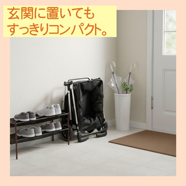 コンパクトなサイズで自立するので玄関のスペースを取らずにすっきり収納。