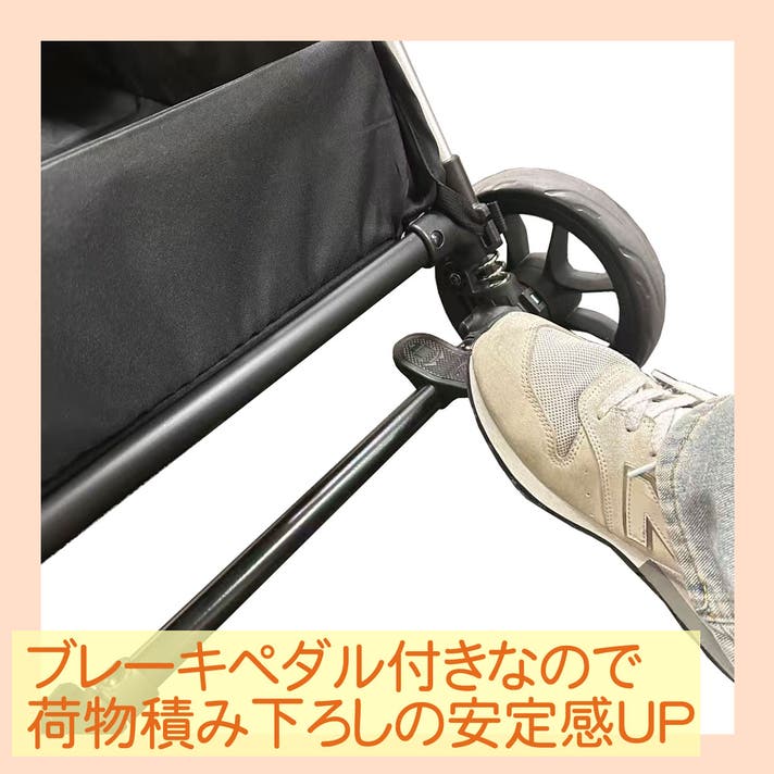 ブレーキで固定できるので、停車時の荷物の積み下ろしもスムーズ。