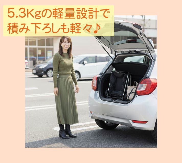 5.3Kg(カゴも込み)の軽量設計だから、車のトランクにも積み込みがスムーズ。