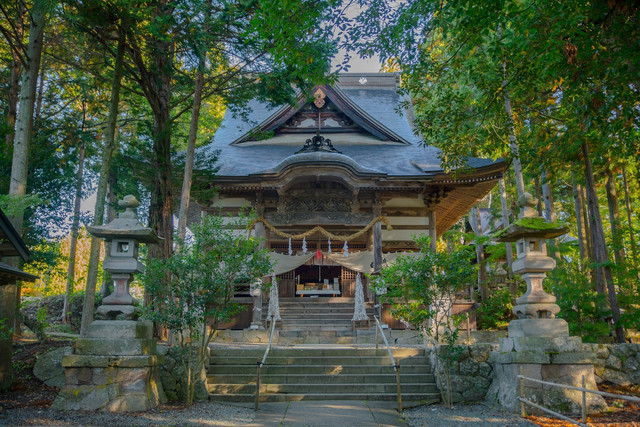 西暦718年(奈良時代養老2年)の創建と伝えられ、本殿は15世紀末期~16世紀初期の建立、県指定文化財に登録されています。撞木造と呼ばれる神仏習合時代の様式で、現存するものは珍しく、大変貴重とされています。