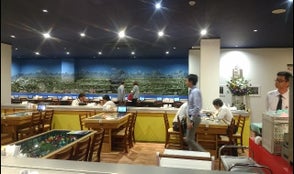 愛知県の豊川市にある「ミニチュアワールドカフェ」と言うカフェはジオラマと特急レーン(おすし屋さんでよく使われる新幹線の搬送装置を巨大化した物)を使った世界初のカフェです。このカフェのテーブルの中にジオラマが鉄道模型と共に組み込まれています。テーブルは大人から子供まで楽しめる様に全16種類あります。時間帯により照明が変化しジオラマのライトアップと共に天井が星空となります。