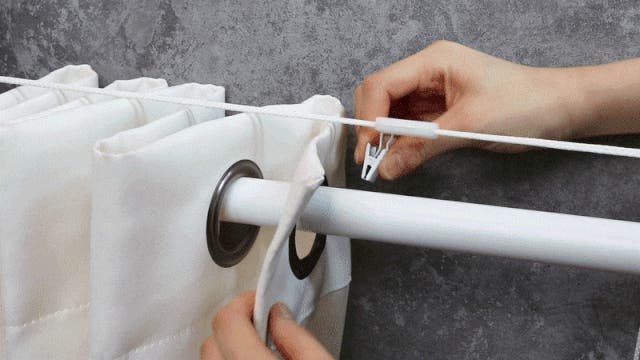 ロープをクリップでつける方式なので、ロープをクリップにさえつければカーテンの方式や幅など細かい部分は考える必要はありません。