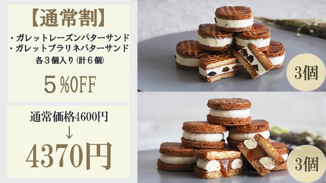 【通常割】ガレットレーズンバターサンド3個・ガレットプラリネバターサンド3個