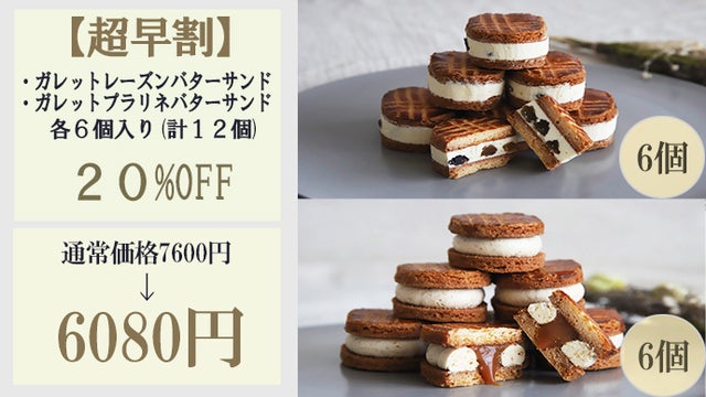 【超早割】ガレットレーズンバターサンド6個・ガレットプラリネバターサンド6個
