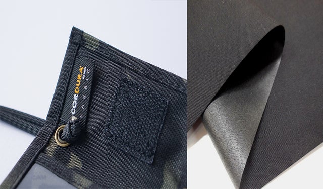 米軍の装備品やアウトドア用品に用いられる高い耐摩擦・耐久性を誇るCORDURA ナイロンの生地です。コーデュラ500は500デニールの100%ナイロンの糸で作られた軽くて丈夫な生地です。