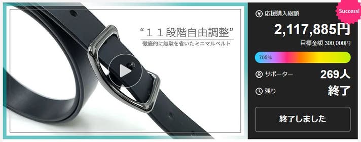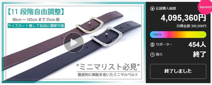 こちらのミニマリストベルトは「ベルトの悩み解消します」という名目で取り組んでいて、過去2回のプロジェクトで700名を超える方に応援購入いただきました。