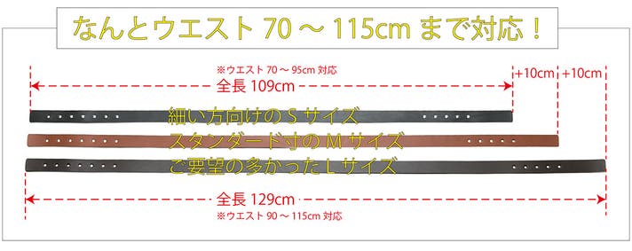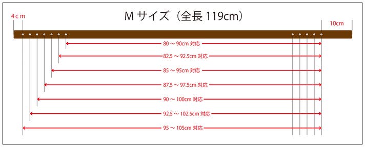 - Mサイズの中央値が92.5cmなので今お使いのベルトより4.5cm大きい