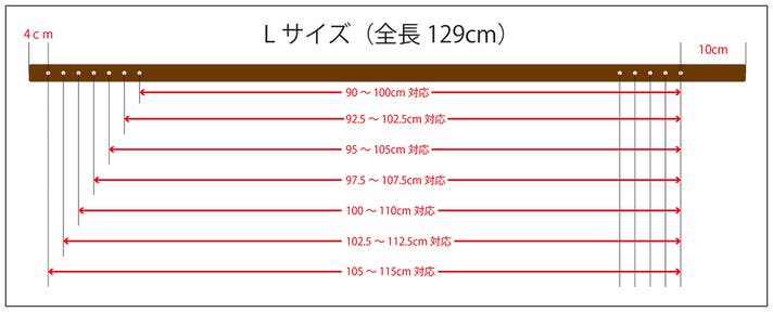 - Lサイズ: 最小90〜最大115cm(中央値: 102.5cm)