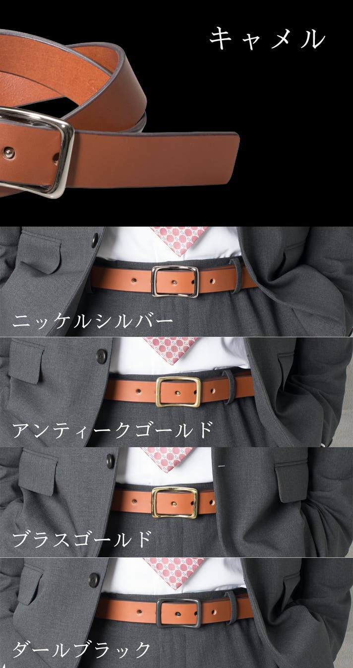 数値はあくまでも直線でのサイズとなり、実際にウエストに巻く際は革の厚みの分若干の差異が出るかと思います。