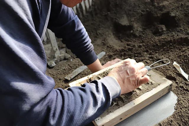 砂型を作る様子。絶妙な力加減を要すとても難しい作業。