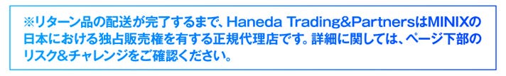プロジェクトに関する情報 ・プロジェクトの属性:輸入商品 ・代理店によるサポート:製品保証1年間 ・プロジェクト実行者(国):日本 ・製造地(国):中国 ※並行輸入品が発生する可能性があります。正規以外での個人輸入等は、完全に防ぐことができない場合がございます旨、予めご了承のほどお願いいたします。 ※リターン品の配送が完了するまで、Haneda Trading&PartnersはMINIXの日本における独占販売権を有する正規代理店です。並行輸入品が発生する可能性がございますが、並行輸入品には正規代理店による製品サポートを受けることができません。 また、正規代理店を通じて購入することで、日本国内での流通に必要な各種認証の取得や、関税の適切な処理が担保されます。 ※一部国内に類似商品が出回っている場合がございます。弊社では他社の類似品に関してのお問い合わせには対応できませんのでご了承ください。 ※使用感などに関しては、感じ方に個人差が予想される製品でございます。そのため、使用感等に関する返品・返金はお受けいたしかねます。 ※初期不良以外に関する返品・返金はお受けいたしかねます。 ※デザイン・カラー・素材などの仕様が一部変更になる可能性がございます。 ※モニター環境によって、画像の色が実物と異なって見える場合がございます。 ※応援購入の数が想定を上回った場合、製造工程上の都合等により出荷時期が遅れる場合がございます。 ※皆様から想定を上回る応援購入を頂き、量産体制を更に充実させることができた場合、一般販売価格が予定価格を下回る可能性がございます。 ※本プロジェクトはアンコールプロジェクト(*)の実施可能性があります。 (*)アンコールプロジェクトとは、実施したプロジェクトが好評だった場合において、当該プロジェクトが終了後に再び数週間から数ヶ月程度実施するプロジェクトを言います。 アンコールプロジェクト実施の場合、本プロジェクトとアンコールプロジェクトで同じ配送月を設定する可能性もございますが、本プロジェクトのサポーターを優先して配送いたします。 ※本文中に記載させていただいたスケジュールは、あくまでプロジェクト公開時点の予定です。応援購入の性質上、配送遅延のおそれがございます。原則として、配送遅延に伴う応援購入のキャンセルはできませんが、リターン配送予定月から3ヵ月を超えた場合には、希望者に限りキャンセルにて対応させていただきます。 【商品等の不具合による返品・交換】 原則として、サポーター都合によるキャンセル・返金は承っておりません。 (サポーター都合のキャンセル不可の例:サイズが合わない、誤注文、長期不在) ◾️対応条件: 商品の初期不良、またはお届けした商品がご注文内容と異なる場合、到着後14日以内にプロジェクトページの「実行者にメッセージ」よりご連絡ください。状況を確認の上、返金対応、または良品との交換対応をさせていただきます。 ◾️返金額: リターン金額(税込)の全額 ◾️返品送料/再送料: 実行者負担 【返品・交換をお受けできない商品】 ・サポーターの責任により破損、汚損が生じた商品 ・商品のタグ、付属品、パッケージ(箱、袋など)を紛失、破棄された商品 ・事前にご連絡をいただいていない商品 ・商品到着後、15日以上経過した商品 【交換をお受けできないケース】 ・限定品や同一商品の在庫がない場合など、代替品をご用意できない商品 以上の注意点につきましてあらかじめご理解とご了承いただいた上で応援購入くださいますよう、よろしくお願い申し上げます。 最後に、本製品を手に取った皆様に喜んでもらえるよう、チームメンバー一同心を込めて対応していきますので、 応援よろしくお願い致します。