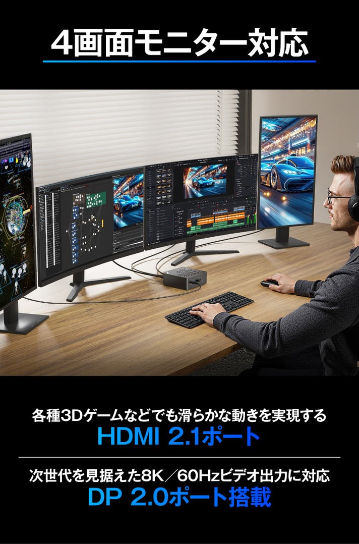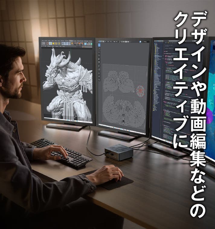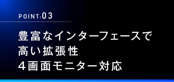 USB4を加えれば最大4つのモニターと繋げるため、クリエイターやトレーダー、各種データを扱うエンジニアの方も大満足の拡張性を誇ります。