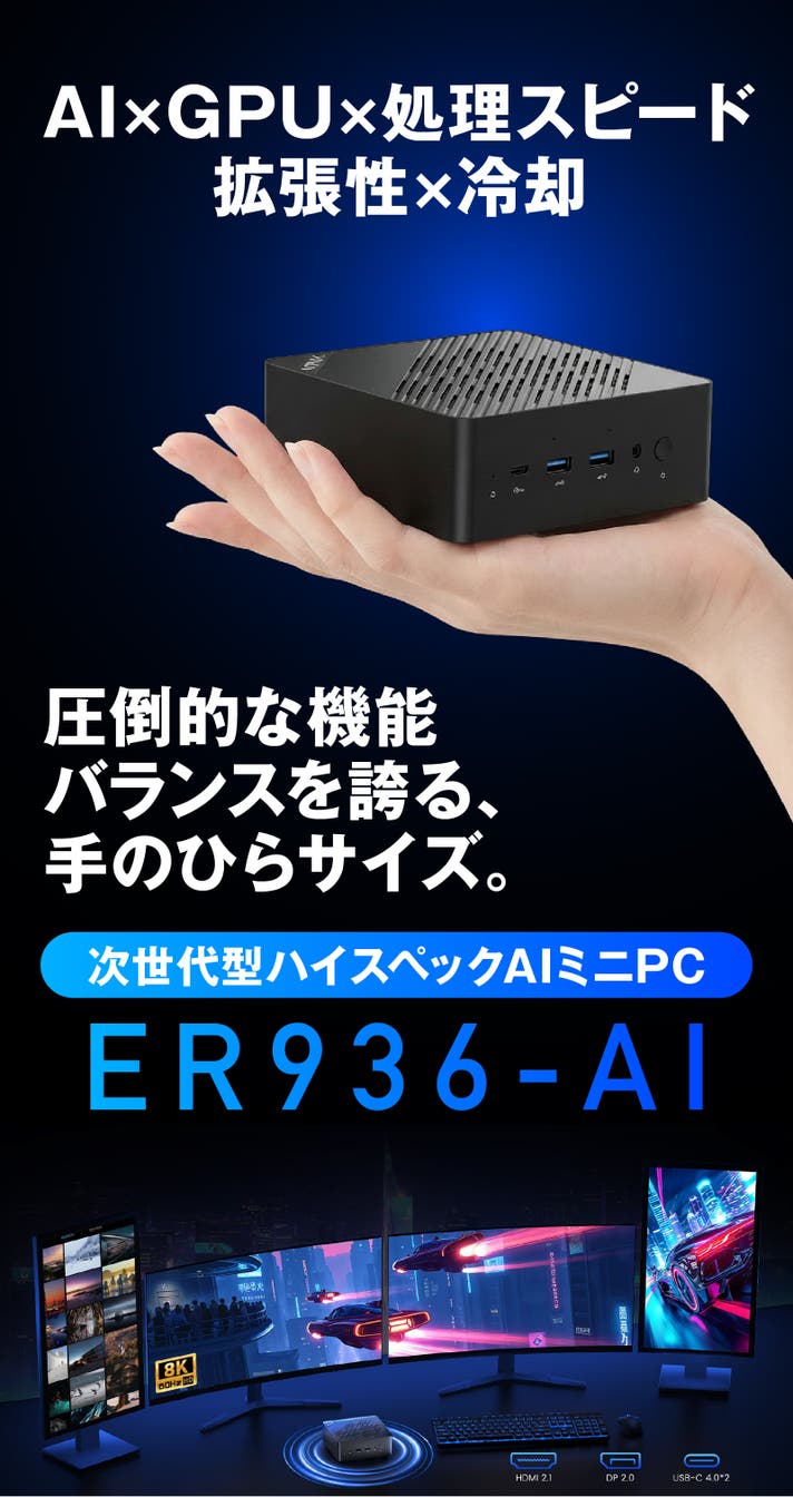 高性能でありながら、省スペースで自由に使えるコンピューティング環境を届けたいという想いは、最新モデル「MINIX ER936-AI」にも受け継がれています。