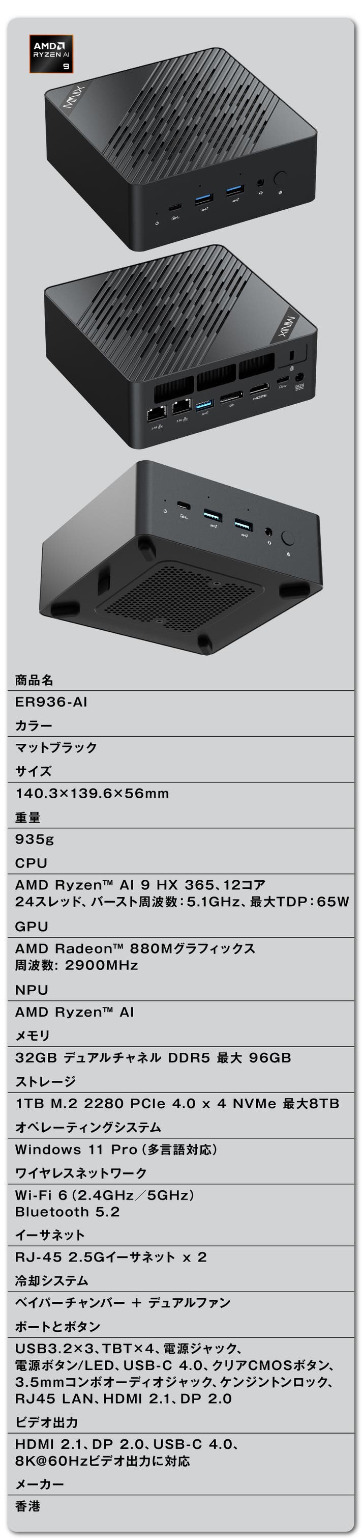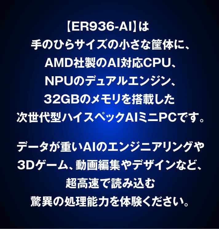 今回ご紹介する”MINIX ER936-AI AMD Ryzen AI 9 365 Mini PC”は、単なる便利なPCではなく、“次代のスタンダード”を目指して生まれたプロダクトです。