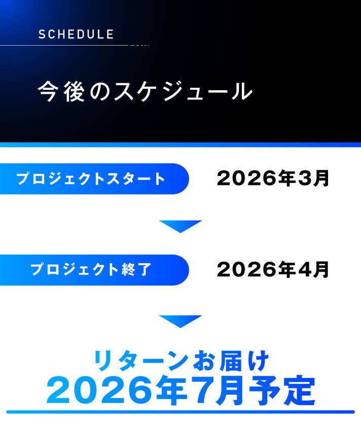 このプロジェクトはAll in型です。目標金額の達成に関わらず、プロジェクト終了日の2026年04月29日までに支払いを完了した時点で購入が成立します。