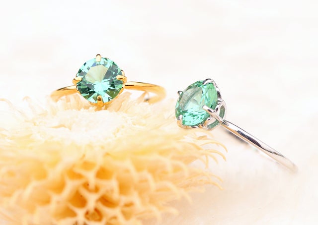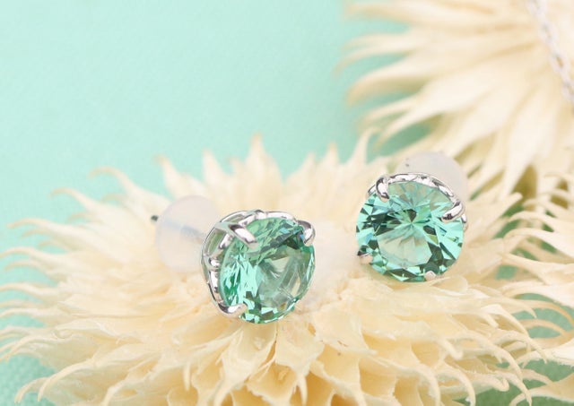 ご案内するミントグリーンの宝石は、お手頃な価格で購入できる人工宝石で制作したジュエリーをご案内致します。