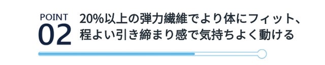 - 20%以上の弾力繊維でより体にフィットし、ずれにくい。程よい引き締まり感で気持ちよく動ける!