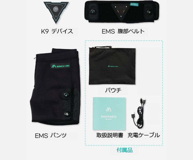 ※ミラクルEMS『K9 EMSパンツ』1個+『K9 腹部ベルト』1個+『デバイス』2個