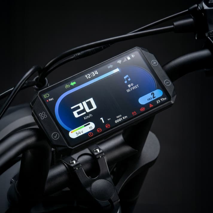 未来感溢れるスマートディスプレイは、本格バイクを彷彿させる細部まで拘った仕様です。Bluetooth対応で、スマートフォンと接続し音楽を聴くこともできます。