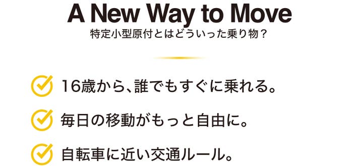 ・免許不要で、16歳以上からすぐに乗れる。