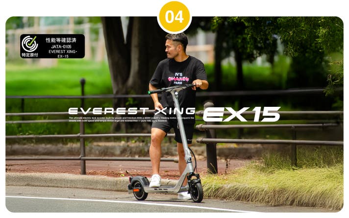 骨太フレームと4インチ極太タイヤで、街でも自然でも、どこでも安心して走れる一台です。軽量約39kgのボディは誰でもスムーズに操作でき、15Ahのバッテリーで約90kmの走行(特定小型原付モデルの場合)が可能。