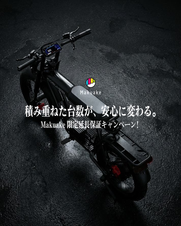 日本でもCOSWHEELは、Makuakeで大きな実績を築いてきました。FATタイヤ電動バイクの先駆けとして、独自性の高いデザインが多くの支持を集めています。