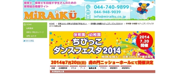 ちびっこダンスフェスタ2014の特設ホームページ+園長向けWEBサイトに、応援頂いた企業のバナーを掲載し、リンク設定をさせて頂きます。