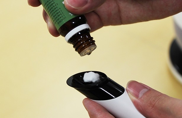 加湿器のキャップ部分に取付け可能な、アロマディフューザー用のアタッチメントが付属しております。中央にコットンを入れて、そこにアロマオイルを染みこませることで、ミストと一緒にアロマの香りが部屋中へと広がります。