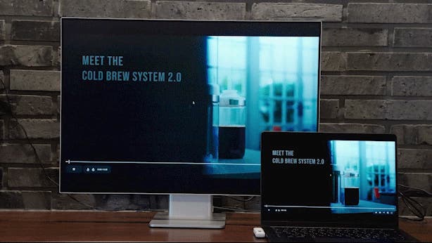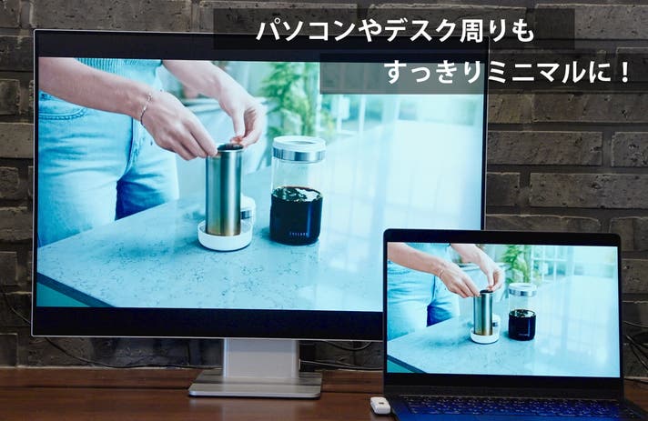 ごちゃつきがちなケーブルを必要とせず、ノートパソコンやスマートフォンなどの端末からテレビやプロジェクターなどの大画面へ簡単に映像が転送できます。