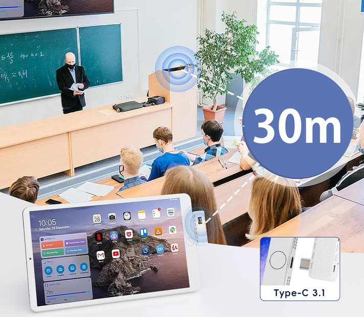内蔵されている高性能チップにより、最大30mの転送距離が可能。