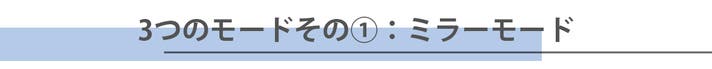 ミラーモードは、送信元の画面を受信先の画面に投影して同じ画面を表示する、いわゆる通常のミラーリングです。