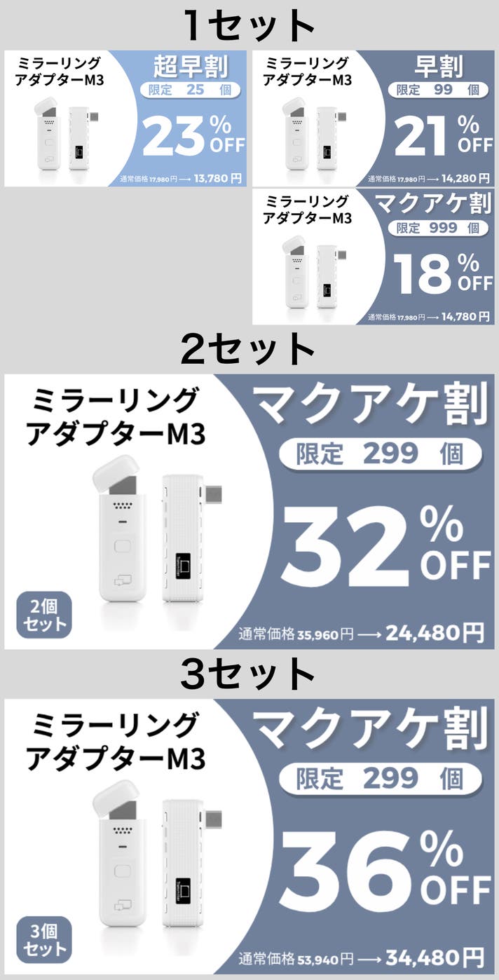【マクアケ割】ミラーリングアダプターM3 ×3セット