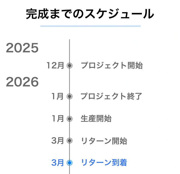 皆様のご応援購入により量産効率が向上した場合、正規販売価格が販売予定価格より下がる可能性もございます。