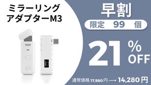 「ミラーリングアダプターM3」は、Wi-Fiやネット接続を必要としないワイヤレスタイプ。